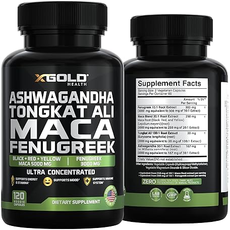 Thương hiệu X Gold Health là cái tên nổi tiếng được rất nhiều khách hàng trên thế giới chọn lựa. Với kiểu dáng đẹp mắt, sang trọng, sản phẩm Ashwagandha 5000mg + Tongkat Ali 1000mg + Maca Root 5000mg + Fenugreek 3000mg Supplement | Black + Red + Yellow Maca Root Extract & Fenugreek Herbal Supplements for Men & Women - Made in USA là sự lựa chọn hoàn hảo nếu bạn đang tìm mua một món cho riêng mình.