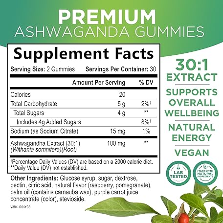 Thông tin sản phẩm Ashwagandha Gummies 30:1 Extract from 3000mg - Vegan, Plant Based, Non-GMO, Gluten-Free & Gelatin Free, Ashwagandha Supplement for Women & Men, Natural Calm, Relaxation, & Immune Support, 60 Gummies