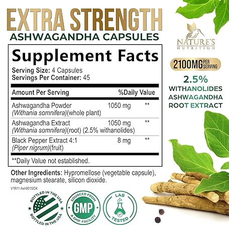 Sản phẩm Ashwagandha Supplements - 2100mg Ashwagandha Capsule for Women & Men, Natural Antioxidant Support, Ashwa Root Extract, Extra Strength Calm Support with Black Pepper, Vegan & Gluten Free - 180 Capsules đang được bán với giá ưu đãi là $18.3338 tại nước Mỹ.