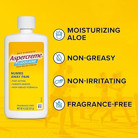 Thông tin sản phẩm Aspercreme Lidocaine Pain Relief Cream Soothes Aggravated Nerves, Numbing Topical Analgesic with Max-Strength 4% Lidocaine & Moisturizing Aloe, 4.3 Oz.