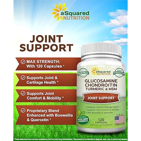 Thông tin sản phẩm aSquared Nutrition Glucosamine Chondroitin Turmeric MSM Boswellia - 120 Capsules - Joint Support Supplement - Joint Support Relief Pills for Health - Natural Supplement for Back, Knee & Hands