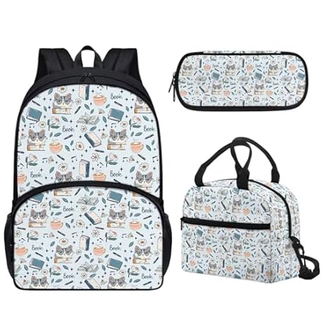 ASQVTIFE Cat Under Armour Backpack for Boys Book Coffee 3 Pcs School Backpack Kids Bookbag Set Laptop Backpack Lunch Bag Pencil Case Gift for Teen Girls Womens for High Schoo