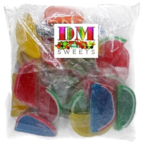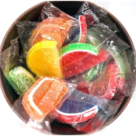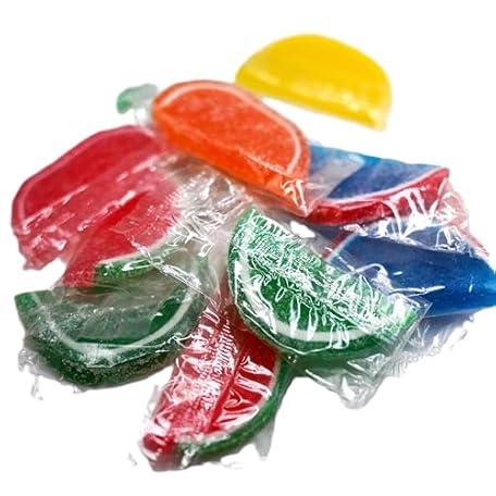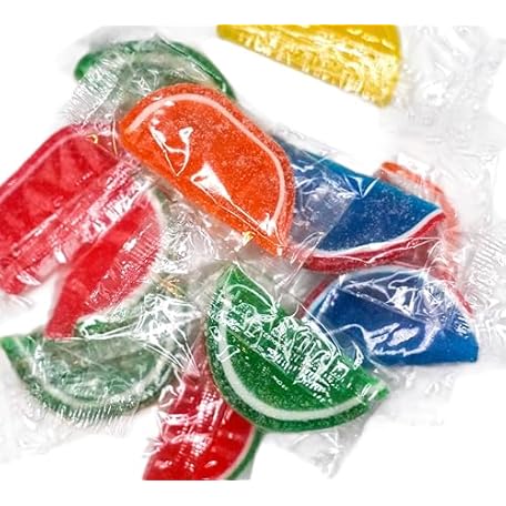 • Assorted Wrapped Fruit Gel Slices - 1 lb of Orange Watermelon Cherry Blue Raspberry Lemon Lime Fresh Sugar Sanded Candy