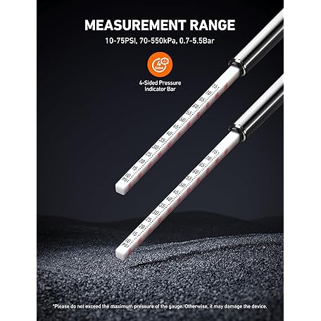 Thông tin sản phẩm AstroAI Pencil Tire Pressure Gauge 2 Pack (10-75PSI, ±2% Span), Air Pressure Gauge for Tires, Stainless Steel Body, and Metal Made Nozzle 3 Measurements for Cars, Bikes, Vehicles