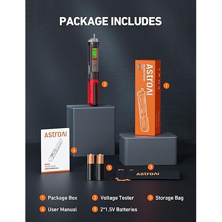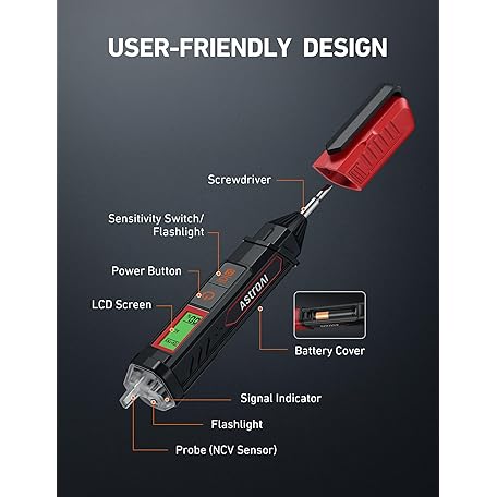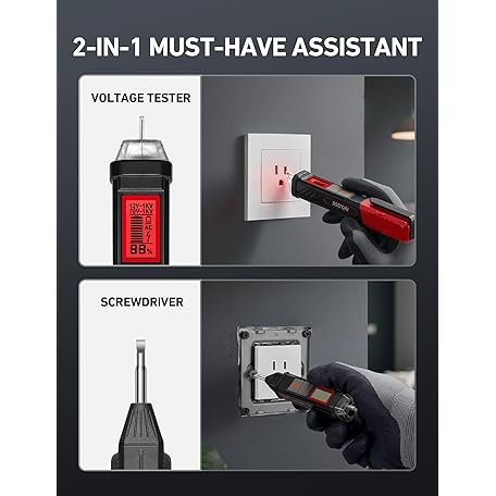 AstroAI VTS1000H Voltage Tester with Screwdriver, Non-Contact Electrical Tester, Dual Range AC 12V/70V-1000V, Live Wire Test, Wire Breakpoint Finder, Audible Alarm, LCD Percentage Display, Red