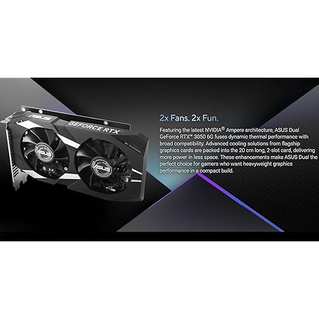 Thông tin sản phẩm ASUS Dual NVIDIA GeForce RTX 3050 6GB OC Edition Gaming Graphics Card - PCIe 4.0, 6GB GDDR6 Memory, HDMI 2.1, DisplayPort 1.4a, 2-Slot Design, Axial-tech Fan Design, 0dB Technology, Steel Bracket