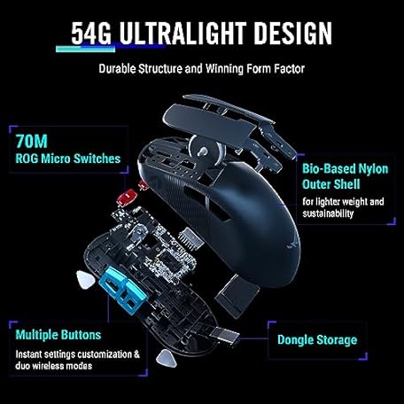 Thông tin sản phẩm ASUS ROG Harpe Ace Aim Lab Wireless Esports Gaming Mouse – Aim Lab Settings Optimizer, Pro-Tested, Right-Handed, 54g Lightweight, Tri-Mode Connectivity, 36K DPI, 90Hr Battery, PC/Mac Support - Black