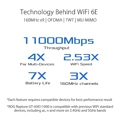 Thông tin sản phẩm ASUS ROG Rapture GT-AXE11000 Tri-band WiFi 6E Extendable Gaming Router, 6GHz Band, 2.5G Port, Triple-level Game Acceleration, VPN Fusion, Subscription-free Network Security, AiMesh Compatible