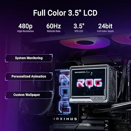 Thông tin sản phẩm ASUS ROG RYUJIN III 360 ARGB EXTREME all-in-one AIO CPU liquid cooler, AMD Ryzen 9000 & Intel® Core™ Ultra Ready, Asetek Gen8 V2 pump; high airflow static pressure magnetic fans; customizable 3.5" LCD