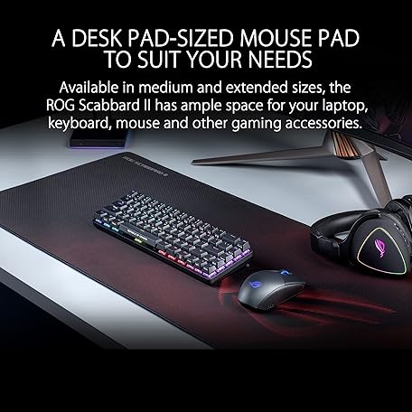 Thông tin sản phẩm ASUS ROG Scabbard II Gaming Mouse Pad – 14.2” x 10.2” (Medium Size), Smooth Glide Surface, Water/Oil/Dust-Resistant, Anti-Fray Edges, Non-Slip Base - Black