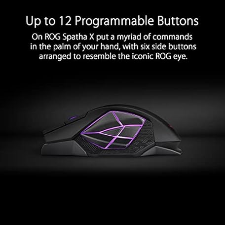 Thông tin sản phẩm ASUS ROG Spatha X Wireless Gaming Mouse – MMO/MOBA Design, 12 Programmable Buttons, Right-Handed, 168g, Dual-Mode (Wired/2.4GHz), 19K DPI, up to 67Hr Battery, Magnetic Charging Dock, PC/Mac Support