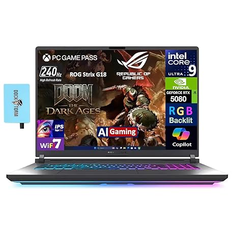 ASUS ROG Strix G18 (2025) AI Gaming Laptop, 18" 240Hz IPS WQXGA Display (Intel Ultra 9-275HX, GeForce RTX 5080 16GB, 64GB DDR5, 2TB SSD, RGB Keyboard, 2 Thunderbolt 5, WiFi 7, Win 11 Pro) w/DKZ Hub