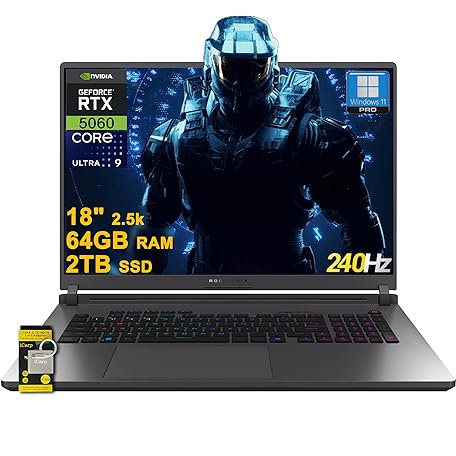 ASUS ROG Strix G18 G815 Gaming AI PC Laptop 18" 2.5k (2560x1600) 240Hz (100% DCI-P3, 3ms) Intel 24-core Ultra 9 275HX 64GB RAM 2TB SSD GeForce RTX 5060 RGB Backlit Wi-Fi7 Win11Pro ICP Hub/Copilot AI