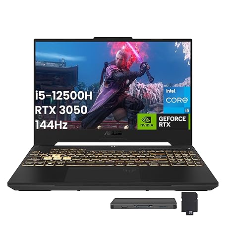 ASUS TUF 15.6" FHD 144Hz Gaming Laptop, Intel i5-12500H, NVIDIA GeForce RTX 3050, 64GB DDR4 RAM, 4TB PCIe SSD, RGB Backlit Keyboard, Wi-Fi 6, Win 11, Gray, 512GB Docking Station Set