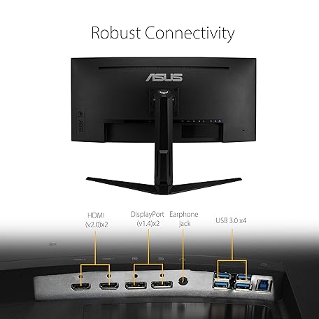 Thông tin sản phẩm ASUS TUF 34 Inch Curved Gaming Monitor - WQHD (3440x1440), 165Hz, 1ms, Extreme Low Motion Blur, FreeSync Premium, Eye Care, Height Adjustable, DisplayHDR 400, DisplayPort, HDMI, USB - VG34VQL1B