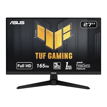 Thông tin sản phẩm ASUS TUF Gaming 27" 1080P Monitor - Full HD, 165Hz (Supports 144Hz), 1ms, Extreme Low Motion Blur, FreeSync Premium, Shadow Boost, Eye Care, HDMI, DisplayPort, Tilt Adjustable - VG277Q1A,Black