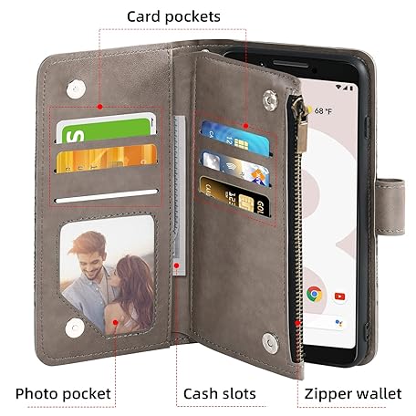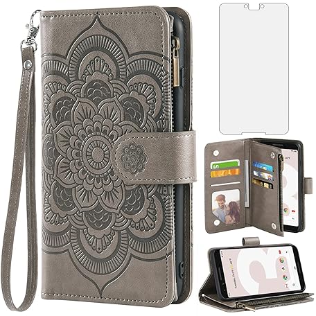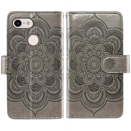 Asuwish Compatible with Google Pixel 3 XL Wallet Case and Tempered Glass Screen Protector Flower Leather Flip Credit Card Holder Stand Cell Phone Cover for Pixel3XL Pixel3 LX Pixle 3XL Women Men Grey
