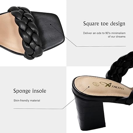 • Athlefit Women's Braided Heeled Sandals Summer Square Open Toe Chunky Block Heels