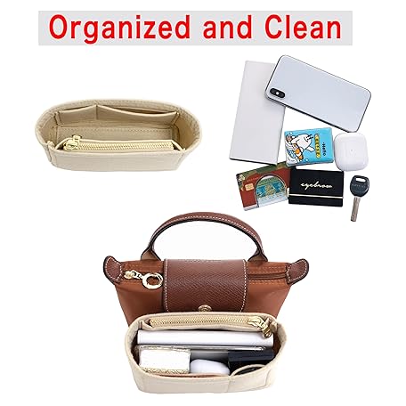 ATSEKTZ ATSEKTZ Mini Bag Organizer For Longchamp Small Tote Bag - Ultimate Mini Bag Storage & Finishing Inner Bag Liner for a Chic Handbags Insert Organizer Fit small Size