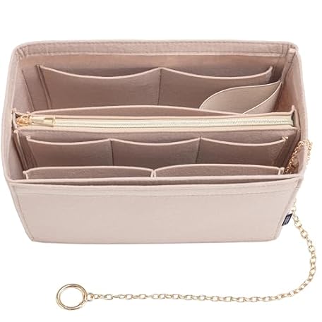ATSEKTZ Purse Organizer Insert, Handbag Organizer with Zipper, Tote Shaper with Cup Holder & Keychain, Compatible with LV, Neverfull, MK, COACH, Longchamp, Kate Spade – Khaki-Med