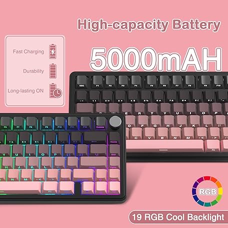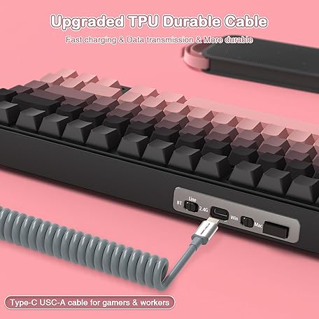 Thông tin sản phẩm ATTACK SHARK X85 Wireless Mechanical Gaming Keyboard with Knob,Hot Swap,BT/2.4GHz/USB-C,Side Print PBT Keycaps,Gasket,RGB,Coiled Cable,Linear White Jade Switch for Win/PC/MAC