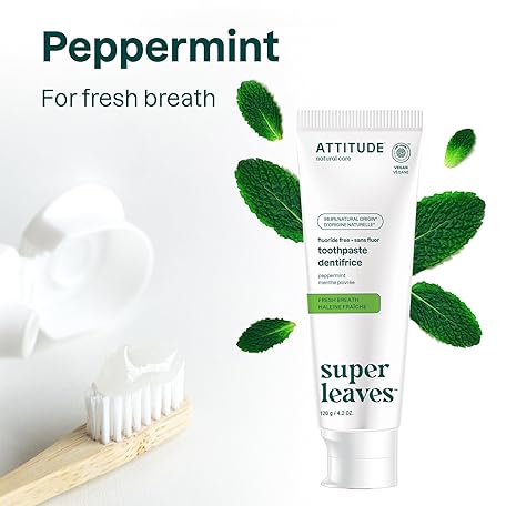 Thông tin sản phẩm ATTITUDE Fluoride-Free Fresh Breath Toothpaste, Peppermint Flavor, Vegan & Cruelty-Free, Sugar-Free, Plant & Mineral-Based Ingredients, Clean Oral Care, 4.2 Oz