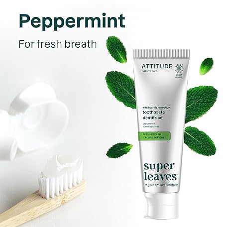 Thông tin sản phẩm ATTITUDE Fresh Breath Toothpaste with Fluoride, Peppermint Flavor, Vegan & Cruelty-Free, Sugar-Free, Plant & Mineral-Based Ingredients, Clean Oral Care, 4.2 Oz