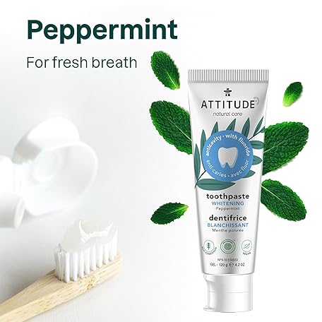 Thông tin sản phẩm ATTITUDE Whitening Toothpaste with Fluoride, Peppermint Flavor, Vegan & Cruelty-Free, Sugar-Free, Plant & Mineral-Based Ingredients, Clean Oral Care, 4.2 Oz
