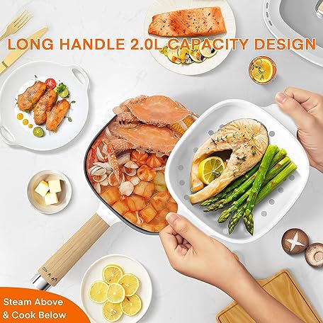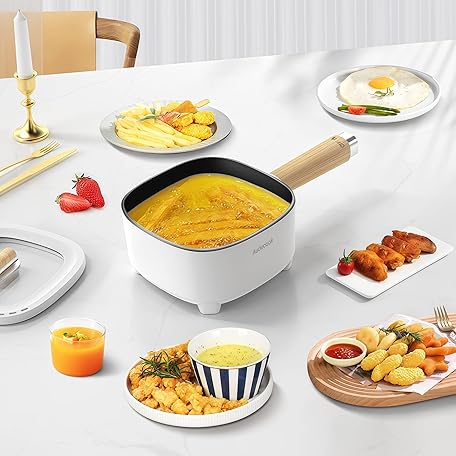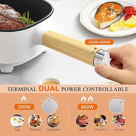 Thông tin sản phẩm Audecook Hot Pot Electric 2L, Cermic Glaze Non-Stick Frying Pan 8 Inch, Portable Travel Cooker for Ramen/Steak/Fried Rice/Oatmeal/Soup, with Dual Power Control (Silicone Spatula Included)