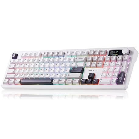 AULA F106PRO Wireless Keyboard, Full Size Mechanical Keyboard with Media Knob & Screen, 8000mAh Battery Hot Swappable Custom PBT keycaps Gaming Keyboard - Blaze Switch,Black White Grey