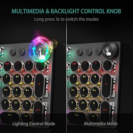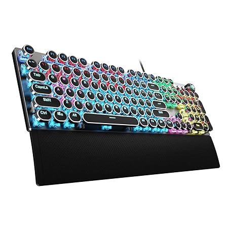 Thông tin sản phẩm AULA F2088 Typewriter Style Mechanical Gaming Keyboard Wired,Blue Switches,Rainbow LED Backlit,Removable Wrist Rest,Media Control Knob,Retro Punk Round Keycaps,USB Wired Computer Keyboard