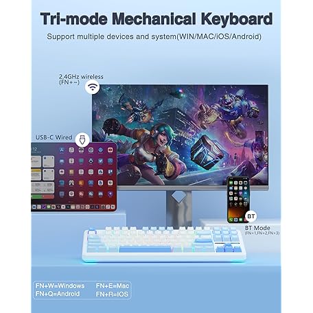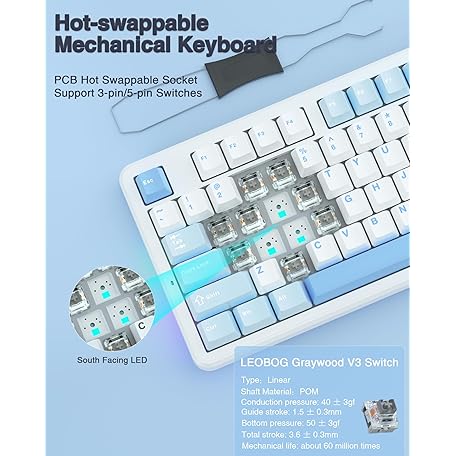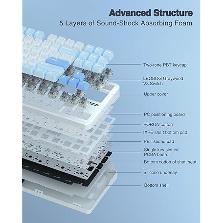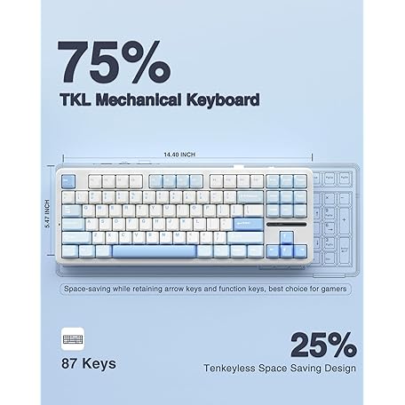 Thông tin sản phẩm AULA F87 Wireless Mechanical Keyboard, 75% TKL Custom Hot Swappable Gaming Keyboards with PBT Keycaps, Pre-lubed Greywood Switches, RGB Backlit Creamy Keyboard, 2.4GHz/USB-C/BT5.0