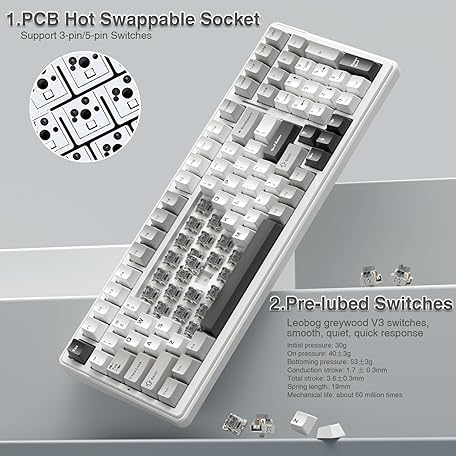 Thông tin sản phẩm AULA F99 Wireless Mechanical Keyboard,Tri-Mode BT5.0/2.4GHz/USB-C Hot Swappable Custom Keyboard,Pre-lubed Linear Switches,RGB Backlit Computer Gaming Keyboards for PC/Tablet/PS/Xbox