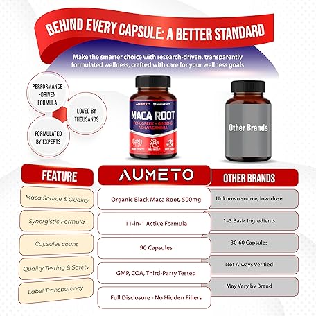 Thông tin sản phẩm AUMETO Maca Root Supplement - Advanced 12-in-1 Formula with Ashwagandha, Fenugreek, Panax Ginseng for Muscle Growth, Stamina and Performance (90 Count (Pack of 1))