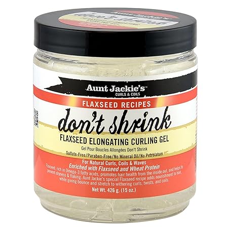 Thông tin sản phẩm Aunt Jackie's Flaxseed Recipes Don't Shrink Elongating Hair Curling Gel for Natural Curls, Coils and Waves, Helps Prevent Dryness and Flaking, 15 oz