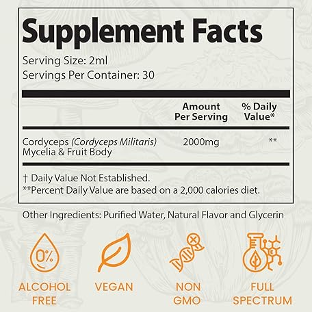 Thông tin sản phẩm Auri Super Mushroom Cordyceps Elixir for Stamina, Natural Energy, Youthfulness and Longevity with Full Spectrum Support - Cordyceps Tincture 60 ml