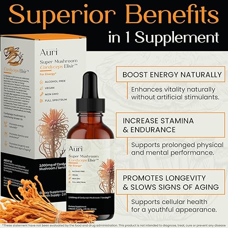 Sản phẩm Auri Super Mushroom Cordyceps Elixir for Stamina, Natural Energy, Youthfulness and Longevity with Full Spectrum Support - Cordyceps Tincture 60 ml đang được bán với giá ưu đãi là $54.4891 tại nước Mỹ.