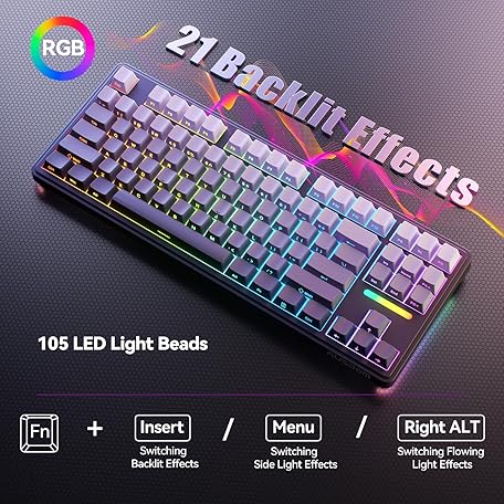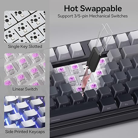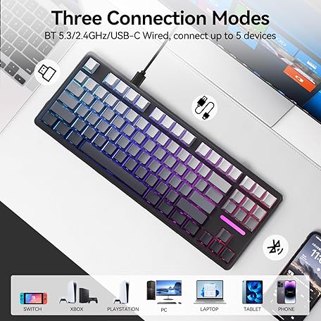 Thông tin sản phẩm AUSDOM H87 Wireless Mechanical Keyboard, 10000mAh Battery Gasket Hot Swappable Custom Keyboard with RGB Backlit, Side Printed PBT Keycaps, Tri-Mode BT5.3/2.4GHz/USB-C Gaming Keyboards, Black Grey