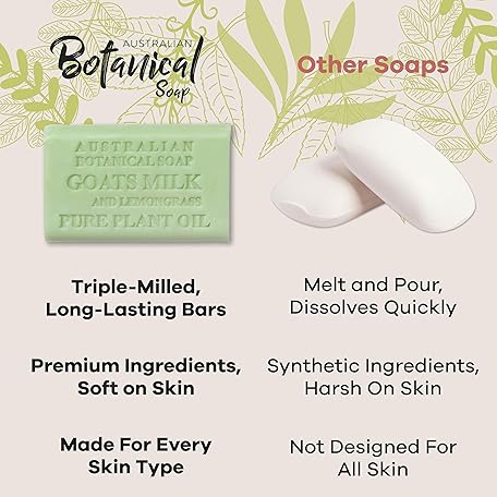 Sản phẩm Australian Botanical Milk Soap Bars, 6.8 OZ French Triple Milled Soap for All Skin Types - Lemongrass, Melon, Raspberry, and Shea Butter, Pack of 8 đang được bán với giá ưu đãi là $37.0491 tại nước Mỹ.