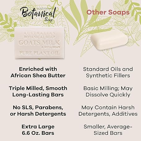 Thông tin sản phẩm Australian Botanical Soap, 6.6 OZ, Triple Milled Bars with Pure Plant Oil, Natural Soap Base, Enriched with Organic Shea Butter, for Men, Women, All Skin Types, Variety Pack of 8, Packaging May Vary