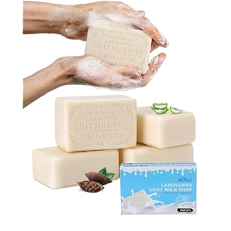 Sản phẩm Australian Goat Milk Soap,Helps Moisturize,Smooth & Cleanse Skin,Triple-milled Bar Soap with Cocoa Butter,Aloe Vera and Pure Plant Oil,Body Soap Bars 6.3 oz for Adults & Babies,Pack of 4 đang được bán với giá ưu đãi là $17.4291 tại nước Mỹ.