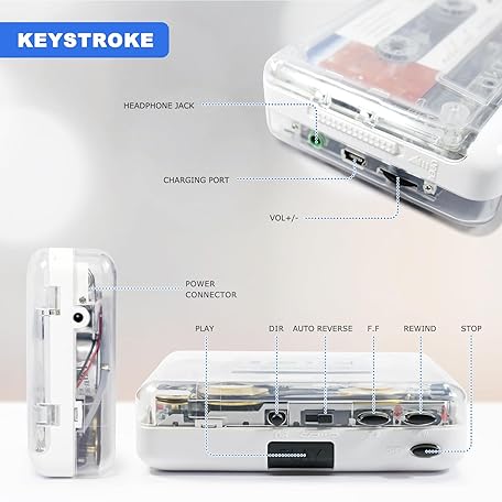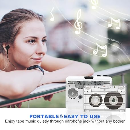 Thông tin sản phẩm Auto Reverse &Clear Stereo Cassette Player,Built-in Cool Copper Wheel Movement&Earphone,Cassette Tape to MP3 Converter with Tape Converter Software,Powered by USB Power Cord or AA Battery