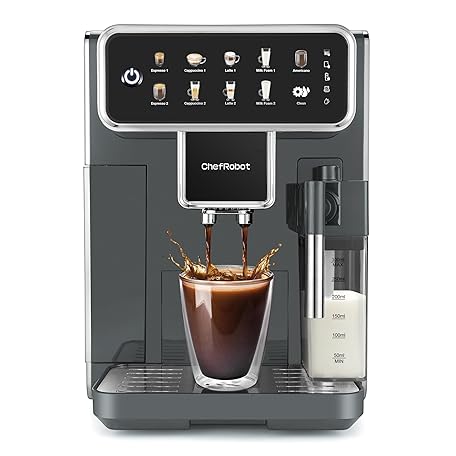 • Automatic Espresso Machine Coffee Maker 12 Cup with Grinder Cappuccino Latte Americano Machine with Milk Frother for Home/Office (Gray)