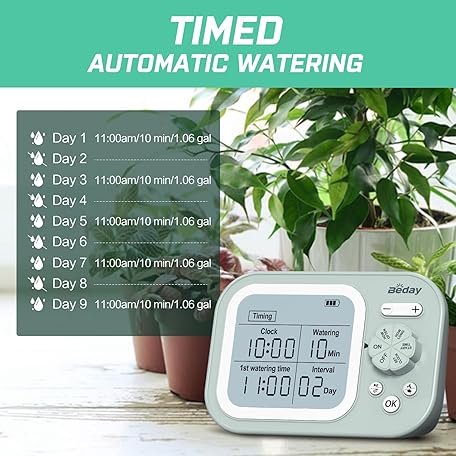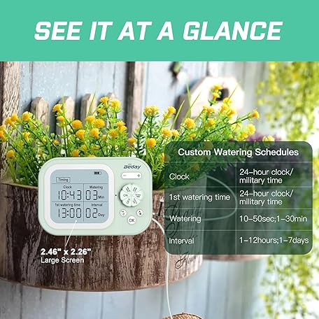 Automatic Plant Waterer Indoor Self Watering System for 15 Potted Plants, Auto Drip Irrigation Kit Programmable Water Timer with Smart Humidity Detection, Green