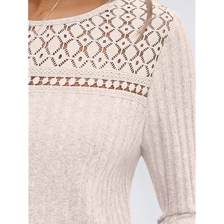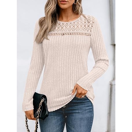 • AUTOMET Womens Lace Long Sleeve Shirt Fall Top Fashion Dreesy Casual Tunic Sweaters Mesh Clothes Trendy Work Cute Outfits