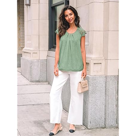 Sản phẩm AUTOMET Womens Lace Tops Pleated Short Sleeve Shirts Summer Business Casual Dressy Blouses đang được bán với giá ưu đãi là $14.1591 tại nước Mỹ.