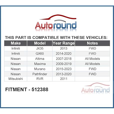Thông tin sản phẩm Autoround 512388 Rear Wheel Bearing and Hub Assembly fit for Nissan Altima 07-18, Maxima 09-19, Pathfinder 13-20, Murano 15-23, Infiniti QX60 14-20, JX35 2013, Mitsubishi RVR 2011, 5 Lug w/ABS