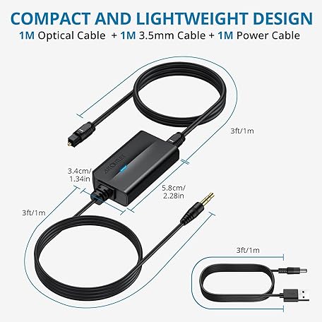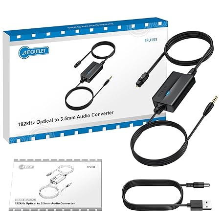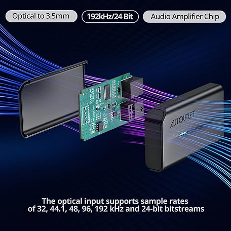 Thông tin sản phẩm AUTOUTLET 192khz DAC Audio Converter, Optical to 3.5mm Converter, Optical Audio Cable to Aux Adapter for HDTV, Blu-Ray Players and Game Consoles