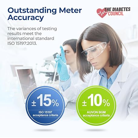 Thông tin sản phẩm AUVON Blood Glucose Monitor Kit for Accurate Test, Diabetes Testing Kit with 100 Glucometer Strips, 100 30G Lancets and Lancing Devices, DS-W Portable Sugar Test Kit, No Coding