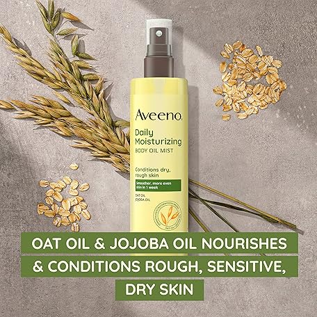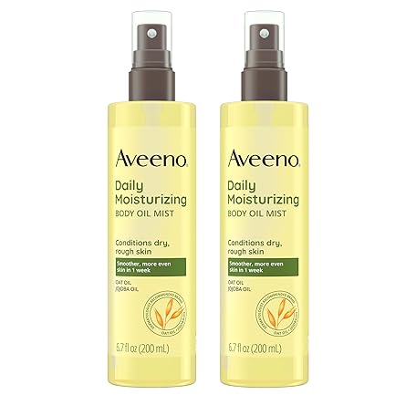 Thông tin sản phẩm Aveeno Daily Moisturizing Body Oil Mist with Oat & Jojoba Oil for Dry Sensitive Skin, Nourishing Body Spray for Smoother Skin, Paraben-, Silicone- & Alcohol-Free, Twin Pack, 6.7 fl. oz, 2 Pack